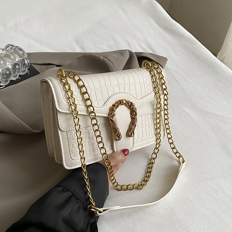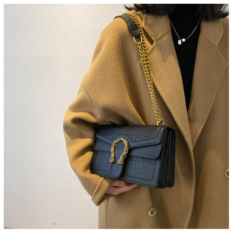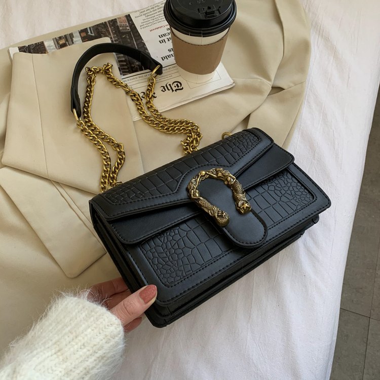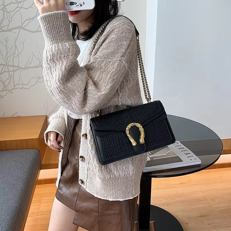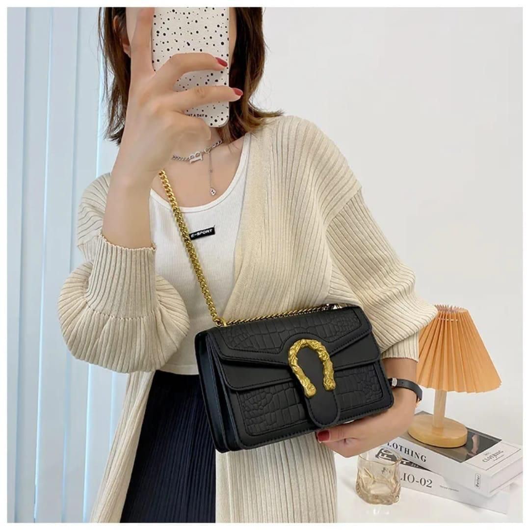 Crafted with a luxurious crocodile-textured exterior, this handbag offers a tactile richness that catches the light and commands attention. The structured body is complemented by a firm top handle and a gleaming front clasp, creating a silhouette that’s both timeless and modern. Whether styled with tailored neutrals or layered over bold prints, it brings quiet power to any ensemble.